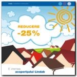Lindab Romania anunta cea mai avantajoasa campanie promotionala din aceasta primavara, sub sloganul „E vremea acoperisului Lindab!”. In perioada 15 martie-15 aprilie, clientii vor beneficia de reducere de 25% la sistemele de acoperis din tigla metalica Nordic 400, impreuna cu sistemele de jgheaburi si burlane, in orice combinatie de culori, in limita stocului disponibil. Promotia este sustinuta de o ampla campanie de promovare, indeosebi pe o varietate de statii radio din intreaga tara, prin spoturi dedicate personalizate pentru partenerii Lindab.