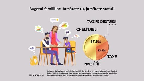 Potrivit datelor folosite de cei trei universitari, venitul mediu brut al gospodariilor din Romania a fost de 6.055 lei/luna in trimestrul IV al anului trecut (2.395 lei/persoana). Din acest venit, romanii cheltuiesc 67,6% pentru consum, platesc taxe ce inseamna aproape o treime din venit (32,1%), iar 0,3% o reprezinta investitiile. TVA aplicabil cheltuielilor gospodariilor se adauga la taxarea deja mentionata si poate ajunge sa reprezinte inca 12,8% din veniturile totale ale unei gospodarii, ceea ce duce povara fiscala totala a gospodariei medii romanesti la 44,9%. Potrivit Institutului National de Statistica, cel mai mare procent din cheltuielile medii ale gospodariei, 32,3%, este reprezentat de alimente si bauturi nealcoolice. Urmeaza costurile locuintei, inclusiv incalzire, electricitate si apa curenta (16,3%).