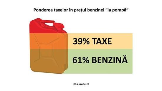 CARBURANTI. Taxele si accizele aplicate productiei, distributiei si comercializarii carburantilor in Romania sunt responsabile pentru o parte insemnata a pretului platit de consumatorii finali. Acciza pentru benzina este de 2.458,10 lei/tona (1,89 lei/litru), iar acciza pentru motorina este de 2.052,89 lei/tona (1,73 lei/litru). In data de 25 aprilie 2022, un litru de benzina costa „la pompa”, in medie, 7,84 lei, iar motorina 8,72 lei. Fara TVA si fara accize, litrul de benzina ar fi costat 4,7 lei, iar cel de motorina 5,6 lei. Rezulta ca nu mai putin de 39% din sumele platite pentru benzina, respectiv 36% din cele pentru motorina merg catre bugetul de stat in contul TVA si al accizelor.