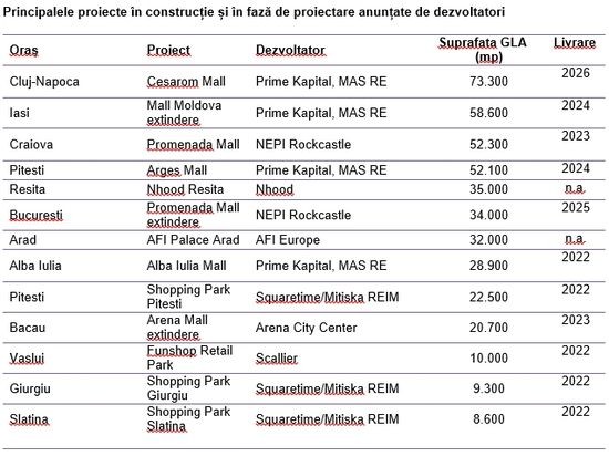 In Bucuresti, in prezent, sunt in constructie spatii totalizand 48.400 metri patrati, respectiv extinderea Promenada Mall in zona Barbu-Vacarescu – Floreasca, Lemon Retail Park in Voluntari si Greenfield Plaza.