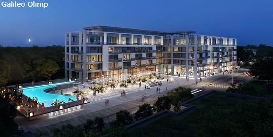 Galileo Olimp Resort & Residences va include o esplanada cu restaurante, terase si magazine tip high street si cu o zona de promenada marcata de Planetarium. Totodata, va oferi diferite facilitati pentru rezidenti, precum parcari in subteran, spatii de joaca pentru copii etc. Proiectul presupune o investitie in valoare de peste 17 milioane de euro si este in proces de obtinere a autorizatiei de construire, iar cladirea va avea 173 de apartamente.