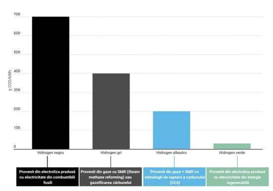 Proiectele Romaniei cu hidrogenConform proiectelor din versiunea din mai a PNRR, in Romania hidrogenul ar proveni din gaze fosile cu captare CO2, denumit si hidrogen albastru, dar ar produce si 100% hidrogen verde. Se propuneau urmatoarele investitii: