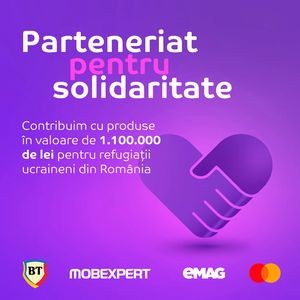 eMAG, Banca Transilvania, Mobexpert si Mastercard doneaza produse in valoare de 1,1 milioane de lei pentru refugiatii ucraineni care au fost nevoiti sa isi paraseasca tara din cauza conflictului...