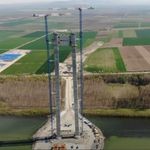 "Podul de la Braila: lucrarile avanseaza bine. La ce se lucreaza acum: la blocurile de ancoraj; la turnuri, unde se pregateste terenul pentru montarea ulterioara a cablului principal - se monteaza schele, cablul de tragere; la drumurile de legatura de pe malurile Braila si Tulcea, complet deblocate anul acesta. Aici se fac decopertari, sapaturi pentru podete si se toarna beton pentru fundatia acestora. Stadiul fizic pe intreg proiectul (pod+drumuri de legatura) se apropie de 50%", a scris luni, pe Facebook, ministrul de resort.