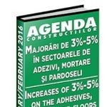 Colectia de articole tematice include materialele redactionale publicate in cadrul revistei Agenda Constructiilor la sectiunea dedicata analizelor de piata anuale in domeniu. Sunt incluse date statistice, analize si comentarii ale reprezentantilor companiilor: AdePlast, Celco SA, Modimorom Cons, Nanochem, informatii cu privire la activitatea unor furnizori globali, precum Henkel, Sika, 3M, Arkema, Dow Chemicals si altele. Piata locala de adezivi si mortare uscate, estimata la circa 200 milioane de euro pe an, a inregistrat o crestere de 3%-5% anul trecut, fata de nivelul din 2014, potrivit opiniilor managerilor din domeniu, in special datorita proiectelor de renovare si reabilitare termica, dar si ca urmare a revigorarii intregului sector al constructiilor. Conform Institutului National de Statistica (INS), volumul lucrarilor de constructii a crescut cu 10,2% in primele 11 luni din 2015 ca serie ajustata, evolutii importante fiind raportate pe segmentul reparatiilor capitale (+23,4%) si al celor de intretinere si reparatii curente (+11%) si, mai putin, lucrarilor de constructii noi (+6,8%). In ceea ce priveste piata sistemelor de pardoseli (industriale, poliuretanice, sape) - evaluata la circa 40-50 milioane de euro pe an - aceasta a inregistrat o evolutie usoara in 2015, noua tendinta din domeniu indicand o preferinta a clientilor pentru pardoseli decorative 3D. Pentru 2015, managerii principalelor companii furnizoare de adezivi, mortare uscate si sisteme pentru pardoseli indica posibile usoare cresteri ale cererii, avand in vedere intensificarea programului national de reabilitare termica, anuntata si confirmata de numarul relativ mare, comparativ cu anii anteriori, al licitatiilor de atribuire a acestui tip de lucrari, lansate in ultimele cinci luni. Pentru informatii suplimentare, click aici!Vizualizaţi acum şi valorificaţi toate oportunităţile!