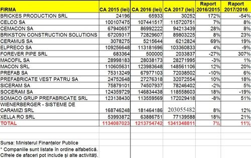 Piata nationala de elemente de zidarie (caramida si BCA) a inregistrat o crestere de aproximativ 10% in anul 2017 fata de nivelul de circa 180 de milioane de euro din 2016, apropiindu-se de pragul de 200 de milioane de euro. Livrarile au fost sustinute, in continuare, de activitatea efervescenta de pe piata rezidentiala. In ansamblu, previziunile pentru 2018 sunt pozitive, in contextul in care piata constructiilor de locuinte, principalul beneficiar al acestor tipuri de produse, continua sa se inscrie pe un trend ascendent puternic, chiar daca ritmul a incetinit fata de 2017. In acest context, principalii producatori de pe piata estimeaza cresteri cuprinse intre 5% si 10% ale cifrelor de afaceri. In total, pe piata materialelor pentru zidarie sunt active 15-16 companii, care au raportat in 2017 o cifra totala de afaceri de aproximativ 1,33 miliarde lei (circa 285 milioane de euro), in crestere cu 10% fata de nivelul de 1,21 miliarde lei din 2016. Rezultatele acestor companii reflecta evolutia sectoarelor respective de activitate, in ultimii doi ani. Trebuie precizat, insa, ca afacerile multora dintre aceste companii includ si alte activitati conexe productiei de blocuri din caramida si BCA. Piata locala a blocurilor ceramice a inregistrat o crestere de aproximativ 10% in 2017, pana la circa 100 de milioane de euro. Acest trend ascendent a debutat in 2014 lent, a continuat in 2016 si 2017 si, cel mai probabil, se va mentine si in acest an. In ceea ce priveste segmentul producatorilor de BCA, acesta s-a inscris, de asemenea, pe un trend crescator in 2017, lucrandu-se la o capacitate optima pe parcursul intregului an, conform datelor Organizatiei Patronale a Producatorilor de BCA din Romania (PRO BCA), entitate ce reuneste principalele companii producatoare de BCA si alte materiale de constructii din Romania, precum Celco, Macon, Elpreco, Somaco Grup Prefabricate si Xella RO. Firmele afiliate PRO BCA au produs, anul trecut, mai mult de doua milioane de metri cubi de BCA, in valoare de peste 90 de milioane de euro.