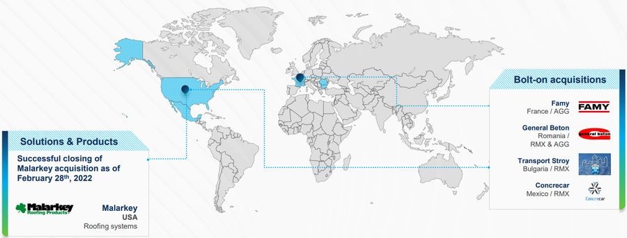 Din punct de vedere regional, in primul trimestru al acestui an, activitatea din America de Nord a inregistrat noi recorduri (+80,8%,la 1,65 miliarde CHF), cu o crestere semnificativa a volumelor de vanzari raportata pentru toate diviziile. Afacerile din America Latina si-au continuat cresterea profitabila (+10,9%, la 682 milioane CHF), cu rezultate foarte bune in Argentina, Columbia si El Salvador. Activitatea din Europa a fost, de asemenea, remarcabila, cu o imbunatatire semnificativa a marjei EBIT. Vanzarile totale au crescut cu 14,5% in primul trimestru, pana la 1,88 miliarde CHF. Volumele indica livrari de ciment de 9,1 milioane de tone (+0,3%), de agregate de 26,6 milioane de tone (+9%) si de beton de 4,8 milioane de metri cubi (+6,9%). Politica de ajustare a preturilor a permis companiei sa tina sub control inflatia, sustinuta de o cerere puternica si sustenabila inregistrata in Europa de Est. In regiunea delimitata de Orientul Mijlociu si Africa, dar si in Asia Pacific, inflatia a fost foarte puternica, dar provocarile specifice au fost depasite cu succes, in contextul mentinerii unei cereri sustenabile. Vanzarile totale din Asia-Pacific au crescut, in intervalul analizat, cu 0,4%, la 1,51 miliarde CHF, iar cele din Orientul Mijlociu si Africa, cu 6,6%, la 599 milioane CHF.