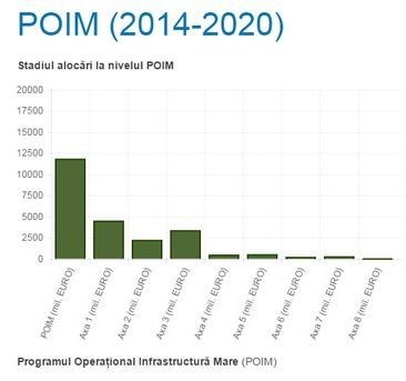POIM 2014-2020 este cel mai complex program operational pe aceasta perioada de programare, cu o alocare de aproximativ 12 miliarde euro pentru sectoarele de transport, mediu si energie. Proiectele fazate care se vor finanta au o valoare eligibile cumulata de aproximativ 4 miliarde euro. La sfarsitul lunii martie a.c., MFE a lansat Ghidul solicitantului aferent sectorului de apa si apa uzata, prin care sunt finantate investitii pentru cresterea gradului de acoperire a retelelor de apa potabila si a celor de canalizare, precum si pentru a indeplini angajamentele privind epurarea apelor uzate, cu o valoare a apelurilor de proiecte de aproximativ 2,8 miliarde euro.