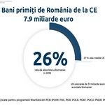 Rata de absorbtie a fondurilor europene a ajuns, in 2018, la 26% din alocarea de 31 miliarde euro acordata Romaniei prin programele operationale in perioada 2014-2020, potrivit celor mai recente date prezentate de Ministerul Fondurilor Europene (MFE). Suma totala primita de tara noastra de la CE a ajuns, astfel, la 7,9 miliarde euro, cu efecte deja vizibile, printre care se remarca infiintarea a 12.000 IMM si a aproape 25.000 de noi locuri de munca, inclusiv calificarea si pregatirea profesionala a angajatilor.In planul infrastructurii, s-au semnat contracte majore de finantare, care vor sprijini piata de constructii in anii urmatori. Astfel, pentru extinderea metroului din Bucuresti, s-au semnat patru contracte de finantare, cu un buget total de 400 milioane de euro. In cazul infrastructurii de transport, bilantul indica o valoare cumulata a contractelor de finantare semnate de circa 3,8 miliarde euro pentru proiectele rutiere, la care se adauga alte 2,3 miliarde euro din zona infrastructurii feroviare. Alte contracte, insumand 4,7 miliarde euro, au fost semnate pentru extinderea si reabilitarea retelelor de apa si canalizare, dar si pentru alte investitii de mediu (deseuri, situri contaminate, combaterea schimbarilor climatice), cu beneficii pentru circa 4,6 milioane de locuitori ai tarii noastre, in special din provincie.