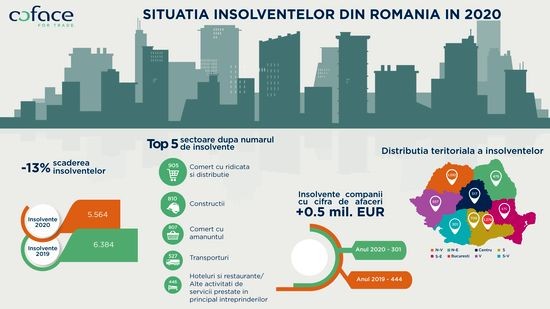 "Mediul de afaceri s-a aflat, in 2020, in fata unei provocari fara precedent, masurile de lockdown impuse pe fondul pandemiei de Covid-19 generand un blocaj economic brusc si o recesiune semnificativa. In ciuda acestor evolutii, interventia ampla si rapida prin scheme de sprijin a mentinut nivelul lichiditatii in piata, astfel ca insolventele au scazut la minimul ultimului deceniu, iar pierderile financiare ale companiilor insolvente au scazut substantial. Pentru anul 2021, insa, anticipam o crestere a insolventelor indiferent de scenariul pe care il aplicam revenirii economice, atat ca efect de baza, dat fiind nivelul din 2020, dar si ca o consecinta a faptului ca, in pofida injectarii de lichiditate, pierderile din anumite sectoare au fost reale si semnificative. Este important ca abordarea mediului de business fata de risc sa ramana una realista si pragmatica. Coface va continua sa se implice activ, ca furnizor de servicii de management al riscului de credit, dar si prin initiative de educatie antreprenoriala", a adaugat Eugen Anicescu, Country Manager, Coface Romania.