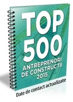 A aparut lista TOP 500 – Antreprenori si Firme de Constructii 2015, care constituie un tabel actualizat (editia decembrie 2015). Documentul, publicat in format electronic, ca tabel Excel, reprezinta clasamentul celor mai importante 500 de companii din domeniul antreprenoriatului si executiei lucrarilor de constructii, structurate pe domenii de activitate si in functie de rulajul mediu din 2012-2014, fiind disponibile si detalii despre evolutia cifrei de afaceri din intervalul 2008-2014 (exprimata in lei si euro), raportul de crestere/scadere anuala a incasarilor si altele. Aceasta versiune a documentului, care a stat la baza realizarii cercetarii complexe intitulate PIATA de CONSTRUCTII: Analiza 2015-2016 & Perspective 2017-2020, include astfel clasamentul actualizat TOP 500 Antreprenori & Firme de Constructii 2015, sub forma unor tabele ce contin datele de contact actualizate ale societatilor respective. Pentru informatii suplimentare, click aici!Vizualizaţi acum şi valorificaţi toate oportunităţile!