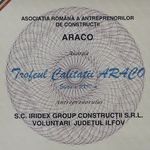 ”Trofeul Calitatii ARACO se acorda anual, in anul urmator celui in care a fost finalizata lucrarea, finalizarea lucrarii fiind validata prin receptia la finalizarea lucrarii sau a receptiei finale, intr-un cadru festiv, mediatizat, cu participarea reprezentantilor autoritatilor publice, ai organizatiilor profesionale din Romania si strainatate din domeniul sectorului de constructii, ai bancilor, reprezentantilor presei, radioului si televiziunii s.a. Iridex este una dintre companiile recunoscute de catre ARACO, membra ARACO, pentru calitatea lucrarilor in domeniul constructiilor pe care juriul format din profesionistii ARACO le-a validat”, a declarat dl. Laurentiu Plosceanu, presedinte ARACO.