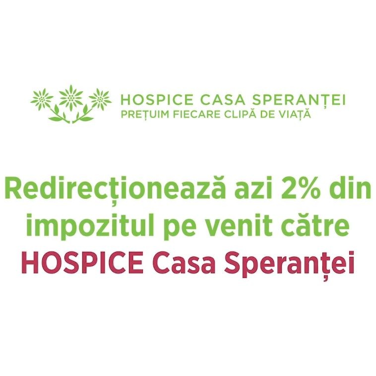 In Romania, aproximativ 160.000 de persoane au nevoie anual de ingrijire paliativa, insa mai putin de 9% au acces la servicii specializate pentru imbunatatirea calitatii vietii, atunci cand acestea sunt ultima mana ce li se poate intinde. Campania de redirectionare a 2% din impozitul pe venit este una dintre cele mai importante modalitati de atragere de fonduri utilizate de HOSPICE, pentru ca aceasta sa fie capabila sa ajunga la un numar cat mai mare de pacienti care au nevoie de ingrijire paliativa. Formularele cu datele fundatiei sunt disponibile pe pe https://www.hospice.ro/2lasuta/, iar acestea pot fi depuse sau transmise, conform legii, pana pe data de 25 mai 2018, catre ANAF. Procedura nu implica niciun cost, redirectionarea acestor sume realizandu-se din impozitul care a fost deja retinut in 2017 de catre stat.