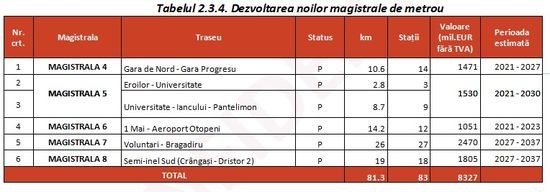 Dezvoltarea retelei de metrou din Bucuresti - circa 8,3 miliarde euro