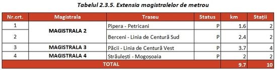 ●        Magistrala 7 - tronsonul Voluntari - Bragadiru va asigura interconectivitatea intre doua zone populate din S-V si N-E Bucurestiului. Lungimea estimata este de 26 km si va avea un numar de 27 statii si doua depouri;