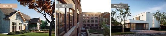 Deceuninck defineste 3 stiluri de cladiri si pentru fiecare a creat un "mood board" ce contine elemente caracteristice acestuia. Registrul de texturi si culori este armonizat cu materialele de constructie specifice fiecarui stil. Ferestrele cu profile Elegant sunt potrivite atat constructiilor noi, cat si celor supuse renovarii.