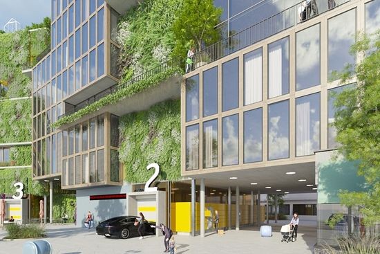 Comandat de WÖHR Autoparksysteme, conceptul lui Heller de centru modular de vecinatate este un design inovator si de ultima generatie care integreaza o varietate de scenarii de utilizare: „Am proiectat un sistem de parcare complet automat, cu servicii integrate suplimentar. Locuitorii unui cartier ar trebui sa gaseasca aici tot ce au nevoie pentru viata de zi cu zi. In timp ce o statie de coletarie si un atelier de biciclete au fost deja integrate in sistemele de parcare in multe cazuri, hub-ul de cartier al lui Heller - gratie designului sau conceptual - poate fi adaptat mult mai larg nevoilor oamenilor. De la centru de zi, sala de fitness, pana la centru de tineret si parc de skating, ar putea exista, de asemenea, multe alte oferte pentru copii si tineri in special. In opinia lui Heller, spatiile culturale, cum ar fi studiourile de arta, salile de cinema sau salile de repetitie ale trupelor, ar putea fi, de asemenea, foarte bine integrate structural. Peretii exteriori de piatra si fatada verde sunt o chestiune fireasca pentru Heller, iar zonele comune si gradinaritul urban de pe acoperis sunt absolut de dorit atunci cand se infiinteaza un cartier de inalta calitate. In mod ideal, hub-urile de cartier vor integra si module de birouri si de vanzare cu amanuntul - utilizarile care sustin ideea de partajare sunt deosebit de potrivite, conform arhitectilor.