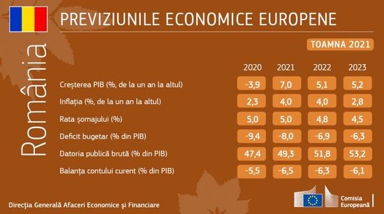 Economia UE se redreseaza in urma recesiunii provocate de pandemie mai rapid decat se preconizase. Pe masura ce campaniile de vaccinare au progresat, iar restrictiile au inceput sa fie ridicate, cresterea economica s-a reluat in primavara si a continuat in acelasi ritm toata vara, sustinuta de redeschiderea economiei. In pofida perioadei tot mai dificile, se preconizeaza ca economia UE va continua sa se extinda in perioada analizata, atingand o rata de crestere de 5 % in 2021, de 4,3 % in 2022 si de 2,5 % in 2023. Se preconizeaza ca ratele de crestere pentru zona euro vor fi identice cu cele la nivel de UE in 2021 si 2022 si de 2,4 % in 2023. Aceasta perspectiva depinde in mare masura de doi factori: evolutia pandemiei de COVID-19 si ritmul in care aprovizionarea se adapteaza la redresarea rapida a cererii in urma redeschiderii economiei.