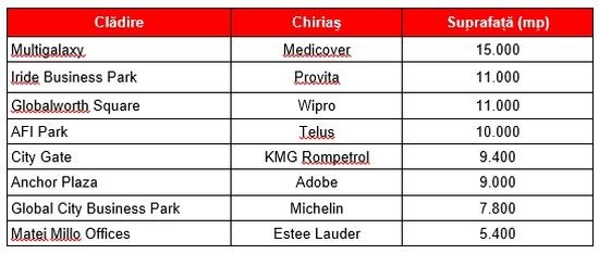 De altfel, si topul celor mai mari tranzactii de inchiriere semnate in 2021 a fost clar dominat de companiile din aceste sectoare, respectiv Medicover cu 15.000 metri patrati, Wipro cu 11.000 metri patrati, Provita cu 11.000 metri patrati sau Allianz Tiriac cu 4.700 metri patrati.