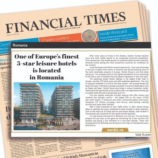 Financial Times, publicatie care se axeaza preponderent pe stirile notabile din sectorul economic si cel de business, aduce in atentie proiectele dezvoltate de Nordis Group. Pe langa investitia de peste 200 milioane euro in proiecte rezidentiale si hoteliere, compania a introdus un produs financiar revolutionar pentru industria de real-estate din Romania.