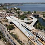 In perioada urmatoare, lucrarile la acest obiectiv de investitii vor viza suprastructura tablierului metalic, montarea si tensionarea hobanelor si infrastructura bretelelor aferente acestui pasaj.