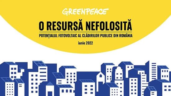 Greenpeace Romania lanseaza raportul „O resursa nefolosita - Potentialul fotovoltaic al cladirilor publice din Romania”, care analizeaza datele oferite de primarii din 11 orase ale Romaniei privind potentialul solar al cladirilor publice. Studiul este realizat de catre Andrei Ilas, membru fondator al Comunitatii de Energie, la solicitarea si cu aportul Greenpeace.