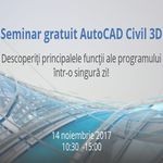 Cadware Engineering organizeaza, la data de 14 noiembrie 2017 la sediul companiei din Aleea Barajul Iezeru nr. 6A, Cladirea Cedru, Etaj 2, sector 3, Bucuresti, un seminar de o zi in cadrul caruia va prezenta principalele functionalitati ale programul AutoCAD Civil 3D si tipurile de proiecte ce se pot realiza cu acest program.Aplicatia reprezinta o solutie de baza in cadrul colectiei Arhitecture, Engineering and Construction dedicata pentru BIM pentru infrastructura si ofera inginerilor functionalitati complete pentru incarcarea punctelor topografice si realizarea planurilor cadastrale, calcul de volume, proiectare si analiza pentru drumuri si retele edilitare.