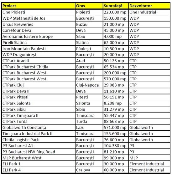 Piata locala a spatiilor industriale si logistice moderne a depasit 4 milioane de metri patrati in 2019, iar pana la sfarsitul anului 2020 urmeaza a fi livrati inca aproape un milion de metri patrati de noi spatii. Proiecte cu o suprafata totala de circa 3 milioane de metri patrati au fost deja incepute sau anuntate pentru a fi dezvoltate in anii urmatori.Potrivit datelor dezvoltatorilor, aproape 90% din stocul actual de centre industriale si logistice moderne este concentrat in Bucuresti si in alte cinci orase, respectiv in Timisoara, Cluj-Napoca, Ploiesti, Brasov si Pitesti. In jur de 300.000 mp de noi spatii de depozitare s-au inaugurat in prima jumatate a anului 2019, peste 40% din acestea fiind localizate in zona Bucurestiului. In afara Capitalei, investitiile au continuat sa fie orientate spre orasele din Transilvania, unde s-au aflat aproximativ o treime din noile spatii industriale si logistice, potrivit datelor Colliers. Piata continua sa fie dominata de dezvoltatorii CTP si WDP, care au generat, impreuna, peste jumatate din noul stoc - insa exista si alte companii care cresc foarte rapid, cum ar fi Globalworth, P3, MLP sau Element Industrial. "Raportat la suprafata tarii, la economie si la populatie, stocul din Romania pare, in continuare, insuficient in comparatie cu alte tari din Europa Centrala si de Est, astfel ca piata poate ajunge la un total de spatii moderne de depozitare de 8 milioane mp pana la finalul deceniului urmator", estimeaza Silviu Pop, Head of Research in cadrul Colliers International Romania.