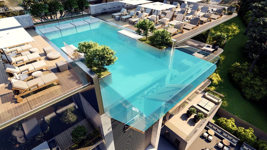 Ansamblul va beneficia de piscina infinity, SPA de 900 m, sala de fitness, cinema room, biblioteca, 3 sali de conferinta, restaurante traditionale si de fine-dining, pista de alergare si statie de incarcare pentru masini electrice, servicii de valet parking, curatenie si room service.