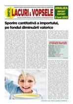 A aparut analiza statistica a datelor referitoare la importul de lacuri si vopsele (in primele trei trimestre ale anului 2012), care include informatii relevante in vederea conturarii precise a evolutiei din domeniu. Materialul cuprinde tendinte, prognoze si comentarii referitoare la situatia pietei importatorilor si la perspectivele acesteia pe termen scurt/mediu. De asemenea, sunt disponibile diagrame relevante cu privire la principalele tari exportatoare de lacuri si vopsele, dar se analizeaza si aspecte referitoare la livrarile de produse pe baza de polimeri in mediu apos, respectiv de sisteme de finisare pe baza de polimeri sintetici, in particular. Structura importurilor si valoarea acesteia, precum si informatiile inglobate in diagrame constituie elemente relevante pentru a estima nivelul actual al pietei nationale de lacuri si vopsele, dupa finalizarea perioadei de recesiune. Totodata, in cadrul mai multor diagrame, este prezentata – inclusiv prin comentariile de rigoare - evolutia pretului mediu de import, luand in considerare anumiti indicatori de referinta. Pe baza analizei statistice elaborate de departamentul specializat al revistei Agenda Constructiilor, se pot contura noi strategii de afaceri, care sa tina cont de exigentele actuale ale clientilor. Daca informatiile statistice disponibile pentru primele noua luni ale anului 2011 relevau faptul ca importurile de lacuri si vopsele pe baza de polimeri in mediu apos s-au situat la… milioane de euro (reprezentand… tone), la nivelul perioadei similare din 2012 Institutul National de Statistica (INS) a anuntat un nivel valoric de… milioane de euro (adica… tone). Aceasta situatie reflecta o diminuare valorica (-5,76%) si o majorare cantitativa (+6,06%) dupa declinul moderat, de -10% din 2009, al segmentului de piata in ansamblu. In schimb, la nivelul primelor trei trimestre din 2011 s-a observat o crestere mai pronuntata a importurilor pentru sortimentul respectiv (+8,88%), ceea ce a confirmat atat trendul initial de recuperare a pierderilor, cat si inscrierea livrarilor intr-o tendinta ascendenta, pe baze sustenabile, indiferent de scaderea (probabil punctuala) din prezent. Pentru trimestrul al treilea din 2012, datele INS indica faptul ca importul de lacuri si vopsele pe baza de apa a insumat circa… milioane de euro (… tone), ceea ce arata ca acest domeniu are o dinamica optima, intrucat la o baza de raportare anuala s-a consemnat o majorare de 1,86% fata de iulie-septembrie 2011 (cand s-au raportat… milioane de euro si… tone). In ceea ce priveste importul de lacuri si vopsele pe baza de polimeri sintetici, datele statistice valabile pentru ianuarie-septembrie 2011 confirma livrarea a… tone de produse (cu o valoare declarata de… milioane de euro), in timp ce in primele noua luni ale anului 2012 s-au consemnat… tone (respectiv… milioane de euro). Si la aceasta categorie s-a constatat o scadere a importului din punct de vedere valoric (-2,64%), respectiv o majorare in ceea ce priveste cantitatea (+15,94%). In intervalul iulie-septembrie 2012, importatorii au reusit sa furnizeze pe piata autohtona circa… tone de lacuri si vopsele pe baza de polimeri sintetici, reprezentand… milioane de euro (-13,25% ca valoare si +2,78% din punct de vedere al cantitatii, pe fondul scaderii pretului mediu declarat la punctele vamale), in timp ce in perioada similara din 2011 acestia au livrat… tone, cu o valoare de… milioane de euro. Practic, din punct de vedere valoric, daca se insumeaza nivelurile specifice importului ambelor categorii analizate, pentru primele trei trimestre din 2012 rezulta o diminuare relativ nesemnificativa (-3,85%), de la… milioane de euro in ianuarie-iunie 2011 la… milioane de euro. In contextul dat, departamentul de analiza al revistei Agenda Constructiilor isi mentine prognozele initiale (caracterizate printr-un optimism ponderat) si preconizeaza ca valoarea importului de lacuri si vopsele din acest an s-ar putea situa la cel mult… milioane de euro, respectiv… tone, in conditiile mentinerii unei evolutii a pretului mediu relativ similare celei din 2011. Evident ca situatia va fi diferita pe fiecare segment in parte, in functie de preferintele beneficiarilor, iar deocamdata se constata ca acestia se orienteaza spre ambele categorii de produse. Pentru mai multe informatii, click aici!