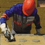Etapa a II-a: Daca suportul este suficient de plan nu este necesara tencuirea inainte de aplicarea vatei minerale. Placile se monteaza incepand de la profilul de soclu (de jos in sus) decalat pe peretele de sustinere in randuri orizontale. Placile trebuie decalate pentru a evita formarea de rosturi in plan vertical. Dupa fixare, este necesara nivelarea placilor, utilizand dreptarul, pentru a asigura o montare corecta a termosistemului. Necesar: dreptar.
