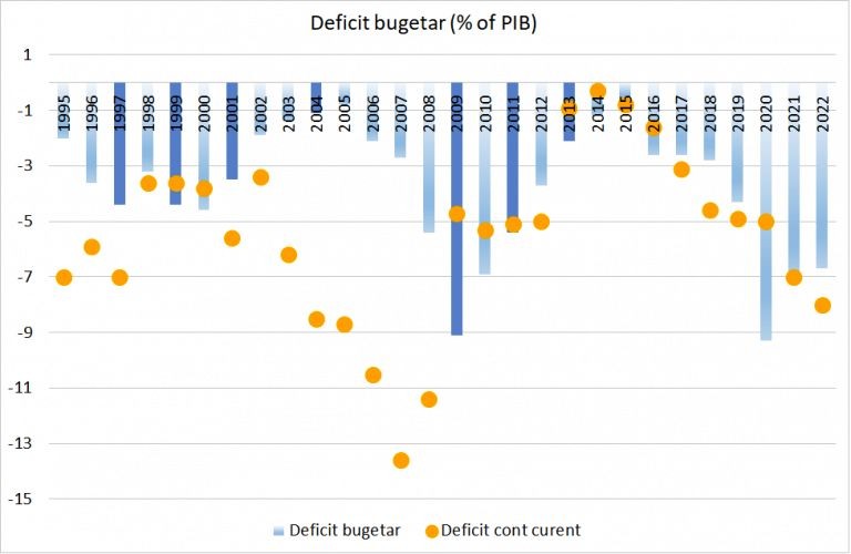 Discutiile despre cresterea economica sau inflatie risca sa arunce in umbra un fenomen care ar trebui sa fie cel putin la fel de preocupant: nivelul la care au ajuns asa numitele deficite gemene. Aceasta sintagma face, de fapt, referire la deficitul bugetar si deficitul de cont curent.Avand in vedere ca un deficit presupune prin definitie un dezechilibru, el va trebui cumva sa fie finantat. Deficitul bugetar este finantat prin imprumuturi, iar deficitul de cont curent poate fi finantat doar prin intrari nete de capital in tara. In ambele cazuri, evolutiile sunt ingrijoratoare si departe de a fi sustenabile. Si toata lumea stie asta deoarece, in cazul ambelor deficite, suntem intr-un déjà vu.