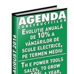 Colectia de articole tematice include materialele redactionale publicate in cadrul revistei Agenda Constructiilor la sectiunea dedicata analizelor de piata anuale in domeniu. Sunt incluse date statistice, analize si comentarii ale reprezentantilor companiilor Bosch, Hilti, Stanley Black & Decker, Stihl si altele. Piata locala de scule electrice si unelte pentru gradinarit s-a situat la un nivel valoric de circa 130-140 milioane de euro in 2015, in perioada 2016-2020 fiind estimata o evolutie medie anuala de 10%, potrivit operatorilor din domeniu. Dinamica va avea loc in contextul general al dezvoltarii pietei locale de constructii la o rata anuala similara, ce a determinat revenirea cererii specifice atat in sectorul produselor profesionale, cat si in cel al uneltelor de bricolaj. In conditiile in care segmentul de DIY, care reprezinta aproape 50% din totalul estimat al pietei, este dominat de marcile proprii ale marilor retaileri, este destul de greu de facut, totusi, o evaluare exacta a valorii totale a pietei locale de scule electrice. Majoritatea operatorilor din domeniu estimeaza ca, in acest an, livrarile se vor inscrie pe un trend ascendent, dupa o crestere de 5%-10% raportata in 2015 fata de precedentele 12 luni. Totusi, dinamica sectorului va fi influentata in continuare, in mod direct, de activitatea din domeniul constructiilor si al industriei. Pe piata locala de scule electrice sunt activi 11 importatori (dintre care trei companii au unitati de productie in Romania) si aproximativ 75 de distribuitori. Cei 11 importatori de scule electrice din Romania sunt: Robert Bosch SRL (importatorul marcilor Bosch, Skil si Dremel), Andreas Stihl Motounelte (Stihl, Viking), Makita Romania (Makita), Hilti Romania (Hilti), Ret Utilaje (AEG), Agent Trade (Metabo), Einhell Romania (Einhell), Yalco Romania (Stanley, DeWalt), Stanley Black & Decker (Stanley, DeWalt, Black+Decker, Facom si Expert), Hitachi Power Tools Romania (Hitachi) si Emerson - Ridge Tool Division (Ridgid). Pentru informatii suplimentare, click aici!