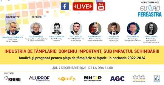 Joi, 9 decembrie 2021, de la ora 14:00, are loc o noua editie din seria videoconferintelor EURO-Fereastra - Piata de tamplarie se adapteaza la noile tendinte. Evenimentul are ca tema centrala de discutie Analiza si prognoza pentru piata de tamplarie si fatade, in perioada 2022-2024, un sector evaluat la circa 800 de milioane de euro anual."Piata locala de ferestre, in ansamblul sau, s-a aflat pe un trend ascendent in ultimii sase ani, desi impactul pandemiei asupra sectorului a fost semnificativ mai ales in zona exporturilor si cu precadere in perioadele de restrictii de circulatie. Potrivit Eurostat, in 2020, exportul de ansambluri din PVC si aluminiu, respectiv de produse din lemn si otel, a scazut usor de la un total de 236,7 milioane de euro (in 2019) la aproape 235,7 milioane de euro, cel mai accentuat regres fiind consemnat pe segmentul ansamblurilor din lemn, ca urmare a faptului ca principala piata de export (Italia) a fost mai puternic afectata de existenta unui numar mare de cazuri de imbolnavire. Totusi, evolutia semnificativa a pietei interne de constructii, in special pe segmentul rezidential, din ultimii doi ani, a sprijinit cererea de sisteme de tamplarie in 2020 si in 2021, compensand in totalitate pierderile generate de scaderea importurilor si mentinand tendinta de crestere din domeniu. In general, estimarile pentru 2022 sunt rezervat-optimiste, iar in cadrul videoconferintei EURO-Fereastra de pe 9 decembrie vom incerca sa trasam, in linii mari, directiile de evolutie ale sectorului in urmatorii trei ani, tinand cont de contextul mai larg al pietei de constructii si evolutiei economiei internationale", a declarat Ovidiu Stefanescu, redactorul-sef al revistei Fereastra si moderatorul EURO-Fereastra.