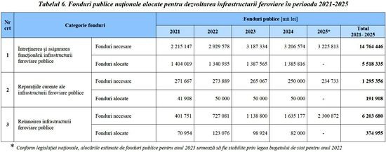 Conform fostului ministru, care citeaza documentul oficial aprobat de Guvern, numai 6% (370 de milioane de lei din 6,2 miliarde lei) din fondurile necesare in urmatorii 4 ani pentru reinnoirea caii ferate vor fi alocate.