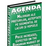 Colectia de articole tematice include materialele redactionale publicate in cadrul revistei Agenda Constructiilor la sectiunea dedicata analizelor de piata anuale in domeniu. Sunt incluse date statistice, analize si comentarii ale reprezentantilor asociatiei de profil (AIVR), precum si ai companiilor: Policolor SA, Fabryo-Atlas, Duraziv, AdePlast si altele. Piata locala de lacuri si vopsele a inregistrat, in 2017, o crestere estimata de producatorii locali la 5% fata de nivelul anului anterior, ajungand la 224 milioane de euro. Estimarea se bazeaza pe analiza mai multor surse Asociatia Patronala din Industria de Vopsele din Romania (AIVR), Interbiz si date de cercetare de piata de tip Retail Audit, informatii de la producatorii de materii prime si alte date ale companiilor active pe plan intern. Cresterea se datoreaza atat revigorarii consumului, cat si cererii de produse premium, mai scumpe, de calitate superioara si cu beneficii aditionale. In 2017 preturile materiilor prime au continuat sa creasca, ceea ce determina noi majorari ale preturilor de vanzare a produselor. Estimarile de pe piata indica posibile cresteri de doua cifre pentru principalele materii prime si in acest an. In ceea ce priveste piata locala a placilor de gips-carton, aceasta se situeaza, valoric, la circa 150 milioane de euro anual, tendinta din domeniu fiind, de asemenea, ascendenta. Pentru informatii suplimentare, click aici!