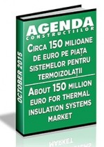 Colectia de articole tematice include materialele redactionale publicate in cadrul revistei Agenda Constructiilor la sectiunea dedicata analizelor de piata anuale in domeniu. Sunt incluse date statistice, analize si comentarii ale reprezentantilor companiilor si asociatiilor: APIVMR, ROMEPS, BPIE, Knauf Insulation Romania, Rockwool Romania, Ursa Romania, Austrotherm, Henkel Romania, Onebrand, Bico Industries, Adeplast si altele. De asemenea, sunt descrise si cele mai importante aspecte ce definesc evolutia pietei lucrarilor de reabilitare termica a fondului construit, evaluate din perspectiva noilor masuri de eficienta energetica si a noului acord semnat pentru POR 2014-2020. Piata locala a izolatiilor cu vata minerala, estimata la 40-50 milioane de euro anual, ar putea inregistra o crestere de maximum 5% in 2015, pe fondul majorarii numarului autorizatiilor de construire, semnalelor pozitive din economie si sporirii gradului de constientizare a populatiei cu privire la eficienta izolarii cladirilor. In ceea ce priveste segmentul de polistiren expandat (EPS), dupa debutul sezonului de varf din 2015, situatia este similara celei din 2014, fara un avans semnificativ si cu fluctuatii lunare atipice, datorate cresterii accentuate a pretului materiilor prime de la inceputul anului. Piata locala de EPS este evaluata la circa 100 milioane de euro anual, 90% din cerere fiind reprezentata de sectorul constructiilor si 10% de piata de ambalaje din EPS. Dupa o scadere de 5%-10% inregistrata pe piata locala a izolatiilor in 2014, atat producatorii si importatorii de vata minerala, cat si furnizorii de polistiren expandat, mizeaza pe crestere in 2015. Pentru informatii suplimentare, click aici!Vizualizaţi acum şi valorificaţi toate oportunităţile!