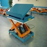 Mesele hidraulice sunt proiectate, in general, pentru a permite egalizarea pe verticala intre doua nivele. Modelele cu actionare electrica, prevazute cu o placa frontala montata la unul dintre capete, pot fi folosite si la descarcarea din autocamioane. In acest caz, sistemul frontal asigura un plan inclinat ce faciliteaza accesul cu transpaletul in/din mijlocul de transport marfa. Pentru o inaltime de ridicare de peste 2.000 mm, masa se considera instalatie de ridicat si este necesara ingradirea la ambele niveluri deservite, concomitent fiind impusa si interconditionarea pozitiei mesei cu deschiderea usilor. Platformele corespund normelor standardului EN 1570 E si detin marcajul CE, respectand legislatia in vigoare din Romania. Instalatia este pusa in miscare de catre un sistem de actionare cu cilindri hidraulici. Din punct de vedere constructiv, se disting trei modele: cu foarfeca simpla, cu foarfeca dubla/tripla verticala, respectiv cu foarfeca dubla/tripla orizontala. Toate piesele metalice sunt decapate si tratate pentru o rezistenta optima la coroziune, fiind acoperite cu lac poliuretanic ce le confera o suprafata neteda si anduranta la uzura provocata de factori mecanici. In ceea ce priveste capacitatea, mesele pot ridica obiecte cu mase de la 500 kg pana la 12.000 kg la inaltimi cuprinse intre 550 mm si 4.500 mm. Principalele aplicatii pentru care se recomanda folosirea acestor mecanisme sunt: sistem pentru paletizarea produselor; accesoriu aferent utilajelor de prelucrare a panourilor din lemn; echipament utilizat pentru stivuirea de produse; element destinat echiparii benzilor transportoare in sectiile unde se executa produse in serii mari; sistem pentru incarcarea-descarcarea paletilor din autovehicule; echipament din categoria lifturilor de marfa instalate in depozite sau spatii de productie. {adauga_php file=formular.php}