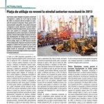 Colectia de articole tematice include materialele redactionale publicate in cadrul revistei Agenda Constructiilor la sectiunea dedicata analizelor de piata anuale in domeniu. Sunt incluse date statistice, analize si comentarii ale reprezentantilor companiilor: Marcom RMC '94, Protruck, Case Utilaje, Kranz Eurocenter, Konecranes, Italia Star, Kolaylik Vinc, Macarale-Sibiu, Echipamente pentru Constructii (EPCO)-Voluntari, Atlas SA, Maviprod, ale oficialilor Asociatiei Distribuitorilor de Utilaje pentru Constructii etc. De asemenea, isi expun punctul de vedere furnizorii importanti de schele, sisteme de cofrare si platforme pentru santier, din partea firmelor: Cofraje Alsina, Doka Romania, Building Echipament si Building Servicii Montaj, Hit Ro, Saligny Construct, Euroresa Schele, CDP Acces-Groupe Piroux, Dr. Kocher, Tehnitech Com, Goer Group, Matur Impex si Via Vac, Argevil si altele. Anul trecut, piata utilajelor noi pentru constructii a inregistrat o scadere de 13,2% fata de nivelul din 2009, in contextul celui de-al doilea an consecutiv de recesiune in domeniu. Totusi, pentru 2011 reprezentantii companiilor de pe piata estimeaza o revigorare a cererii, datorata, in special reluarii lucrarilor la obiective importante, precum si demararea unor proiecte de anvergura, reprezentate preponderent de centre comerciale si cu destinatie sportiva. Potrivit informatiilor furnizate de Asociatia Distribuitorilor de Utilaje pentru Constructii (ADUC), in 2010 firmele membre au livrat, in total, 676 de unitati, dupa ce in 2009 fusesera vandute 779 de echipamente. Regresul consemnat de piata utilajelor in ultimii doi ani poate fi pus pe seama faptului ca antreprenorii, avand de executat mai putine lucrari de constructii, au folosit echipamente pe care le aveau deja in dotare sau au apelat la metoda inchirierii. Cu toate ca in 2009 majoritatea operatorilor ce activeaza pe segmentul utilajelor pentru constructii considera ca regresul de 76% a reprezentat cota minima in ceea ce priveste scaderea vanzarilor, in anul 2010 sectorul a continuat sa inregistreze reduceri importante. In ansamblu, anul trecut piata utilajelor de constructii s-a diminuat cu aproximativ 13%, conform datelor ADUC. Astfel, rezultatele inregistrate in 2010, privind involutia pietei utilajelor de constructii, au fost in stransa legatura cu diminuarea investitiilor in infrastructura, sub impactul crizei financiare. Cu toate acestea, in ultimele trei luni ale anului trecut, s-a inregistrat o crestere de 49% a livrarilor, in comparatie cu aceeasi perioada din 2009. Acesta poate fi considerat un semnal pozitiv referitor la posibilitatile de revigorare a pietei. Pentru mai multe informatii, click aici!